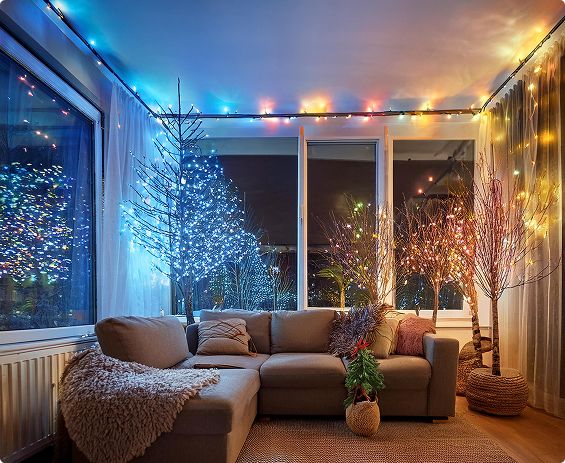 En el hogar: Enreda luces alrededor de las barandas, crea un marco brillante en las ventanas o cuelga cortinas de luces detrás de las cortinas para un efecto mágico.