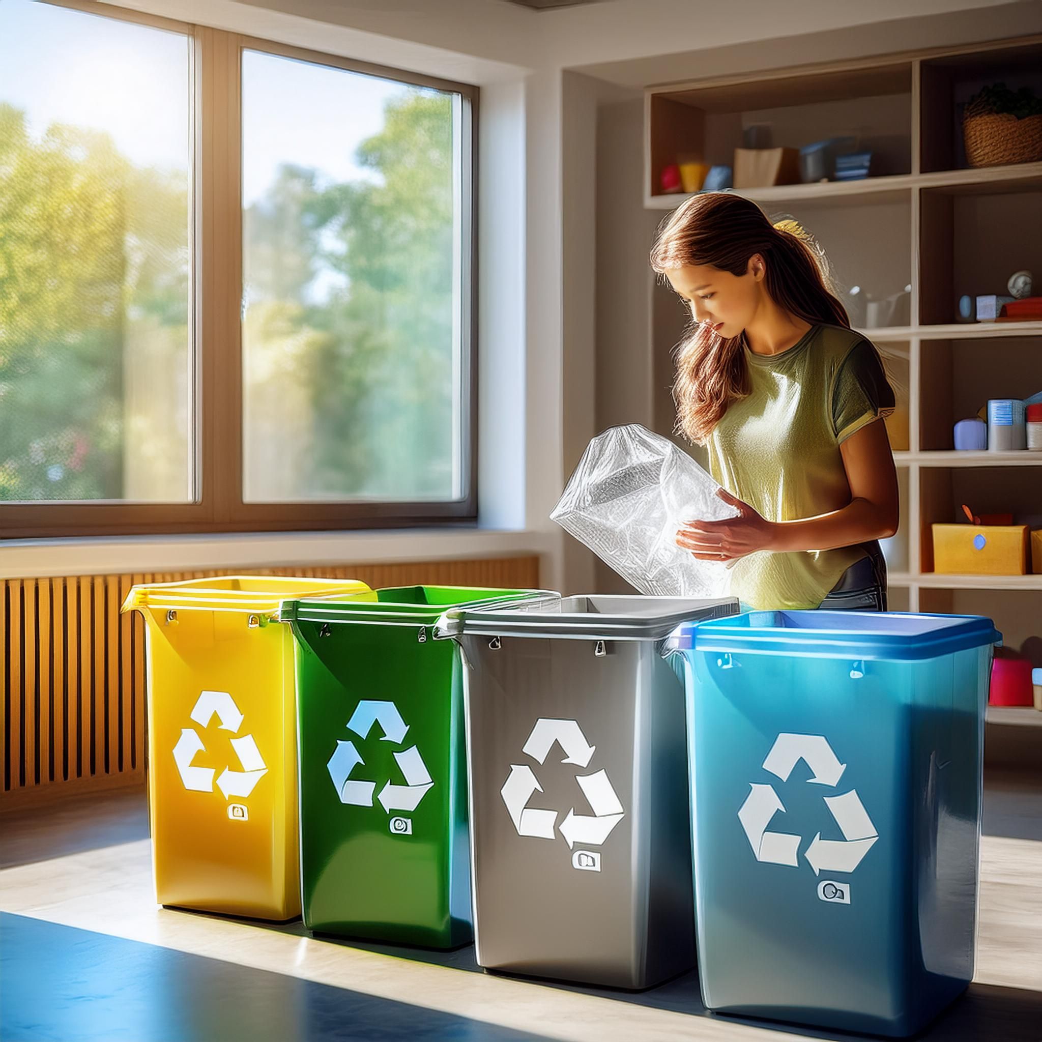 El primer paso para reciclar de manera efectiva es contar con los recipientes adecuados. Necesitarás cuatro contenedores que te permitan separar tus residuos de forma correcta: